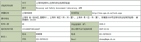 实验室自2007年3月起实施ISO 17025管理体系,于2009年8月获CNAS首次认可。 实验室自2010年3月起增加依据《实验室资质认定评审准则》实施管理体系,于2010年12月首次通过上海市质量技术监督局CMA资质认定。 2012年5月、2015年7月分别通过了CNAS/CMA“二合一”复评审+扩项评审的现场评审,2012年8月、2015年9月获得CNAS/CMA新证书。
