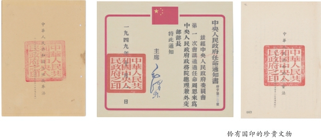1954年9月,第一届全国人民代表大会第一次会议召开,制定了《中华人民共和国宪法》。按宪法规定,全国人民代表大会为最高国家权力机关,国务院为最高国家权力执行机关。至此,中华人民共和国中央人民政府及其所属和下属行政机关的印信完成了它们的历史使命,全部上缴给新的中央人民政府——国务院。1959年5月,国务院秘书厅将这批珍贵的政府印信拨交中国革命博物馆(今中国国家博物馆)珍藏。