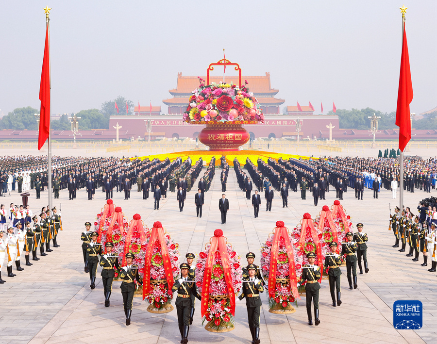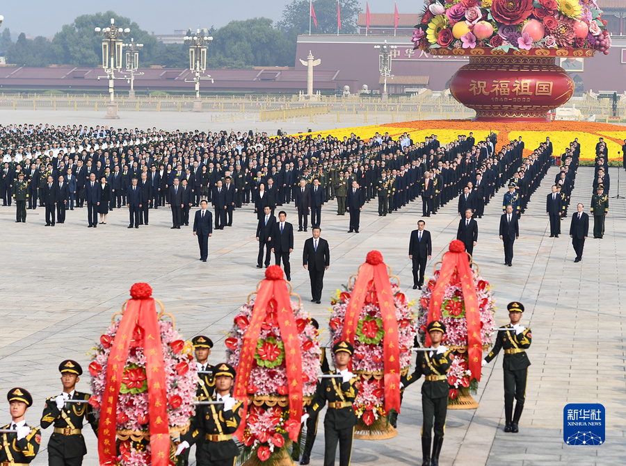 9月30日上午,党和国家领导人习近平、李克强、栗战书、汪洋、王沪宁、赵乐际、韩正、王岐山等来到北京天安门广场,出席烈士纪念日向人民英雄敬献花篮仪式。新华社记者 燕雁 摄