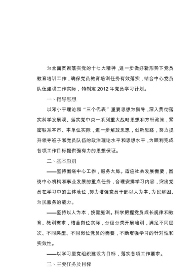2012年党员学习培训计划