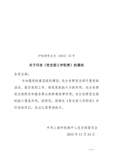 沪检测党总支〔2015〕15号(党支部工作职责)