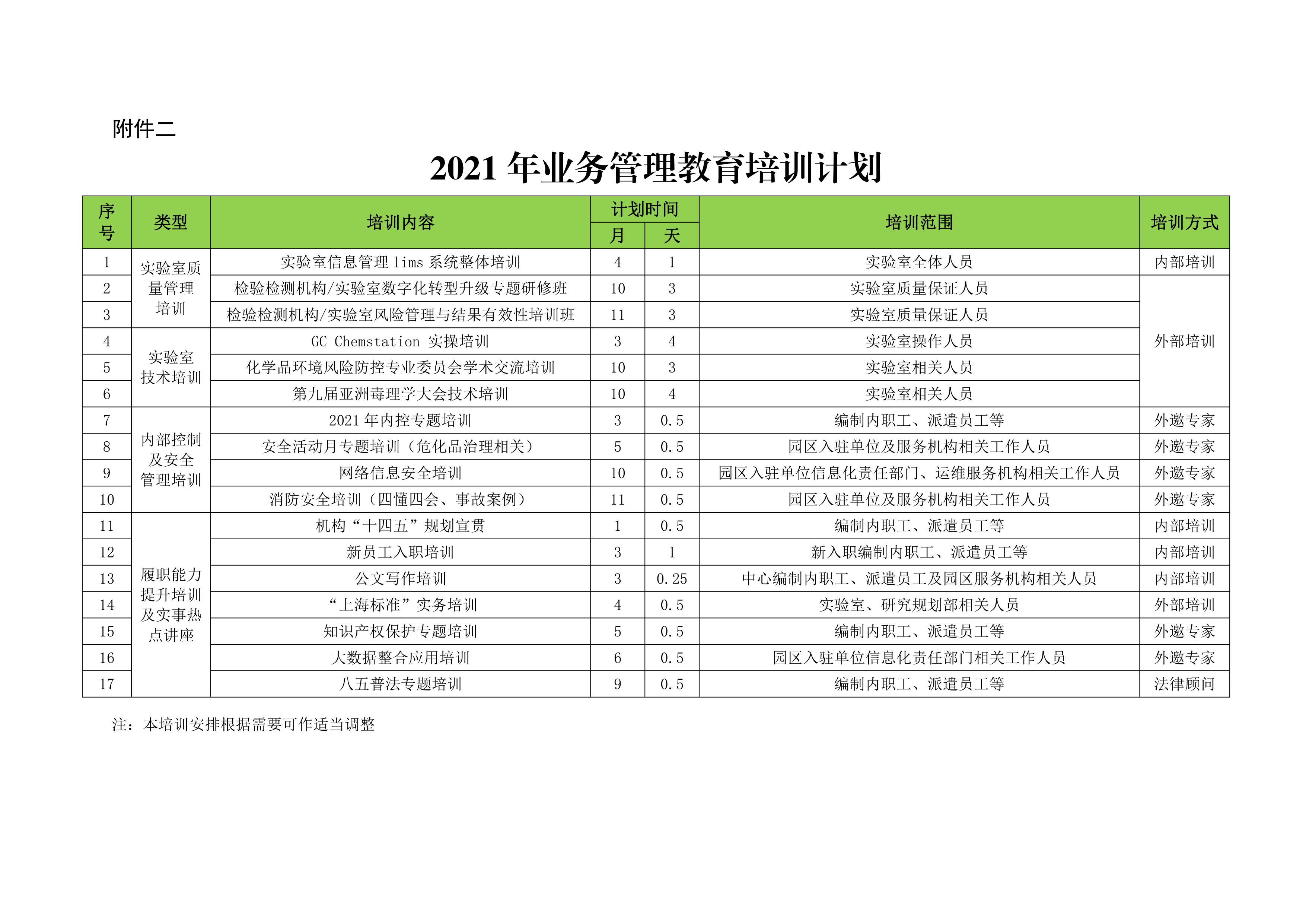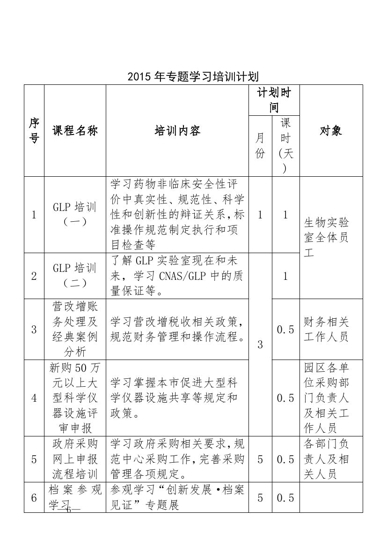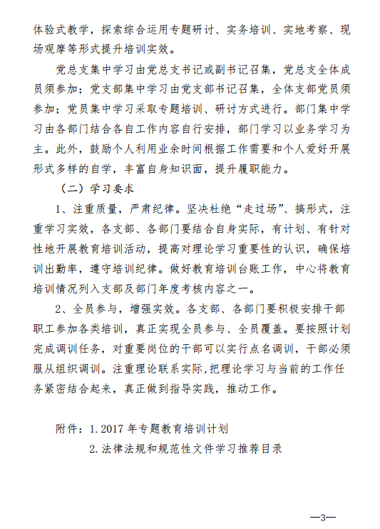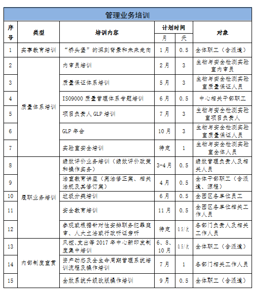 2017年度教育培训计划