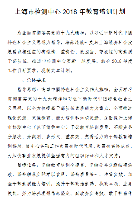 上海市检测中心2018年教育培训计划