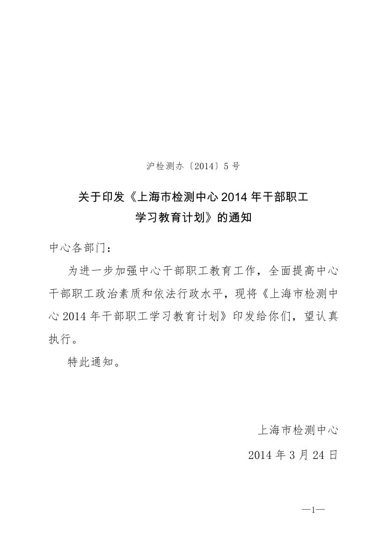 沪检测办[2014]5号(2014年干部职工学习教育计划)