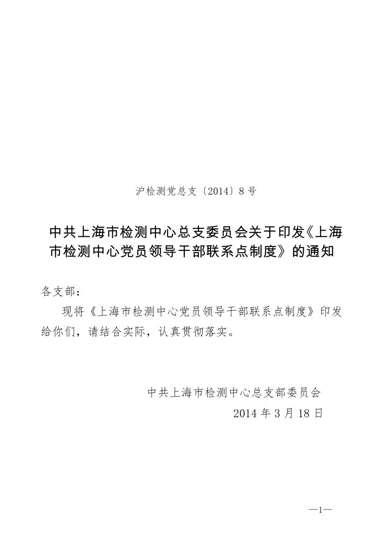 沪检测党总支[2014]8号(党员领导干部联系点制度)