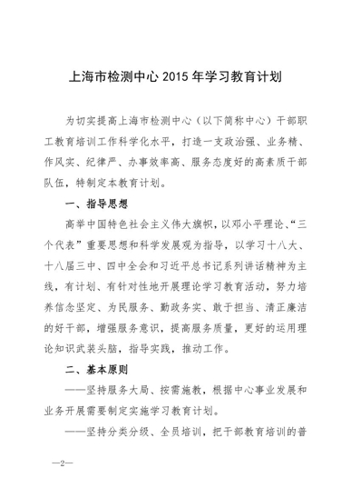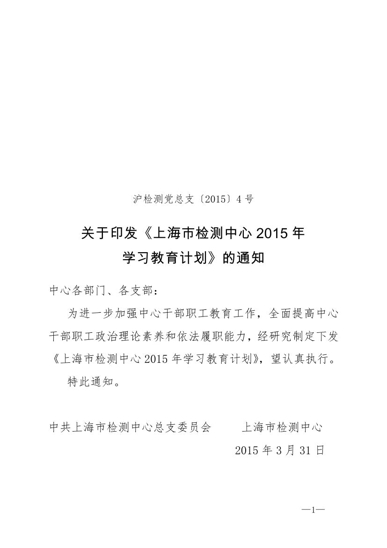 沪检测党总支[2015]4号(2015年干部职工学习教育计划)2